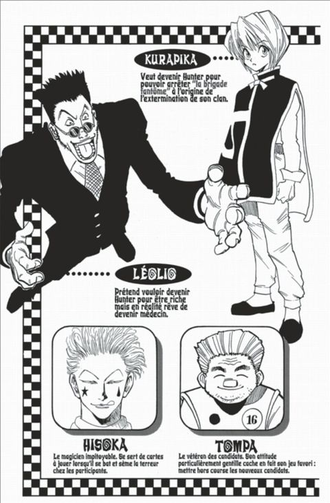 Le récit s'étoffe au fur et à mesure qu'apparaissent de nouveaux personnages secondaires. On notera surtout le mystérieux Hisoka dont la puissance semble sans limites et les motivations, inattendues.