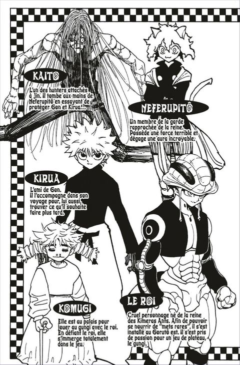 L'affrontement entre les hunters et les Kimera Ants a repris ! Shoot fait face à Yupî mais semble en bien mauvaise posture. Kuckle l'a compris et vient à son secours. Entre temps, Gon et Kirua rencontrent Pitô?