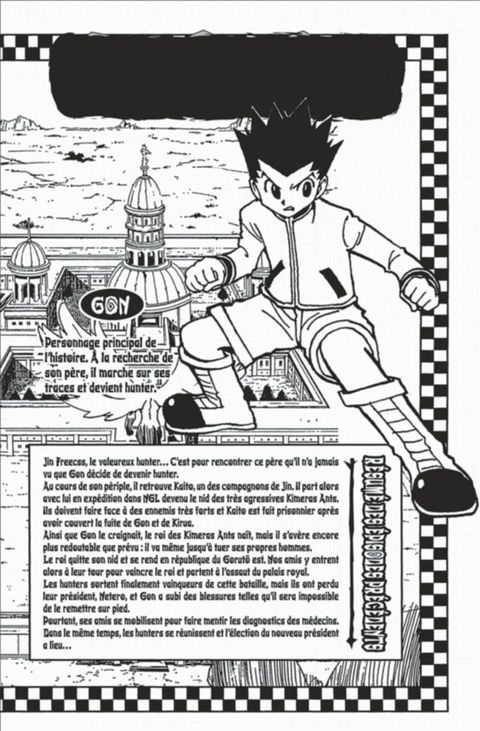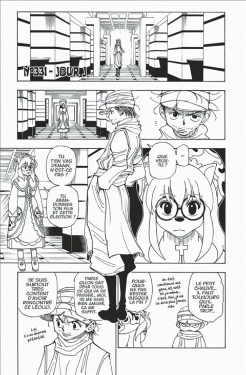 Fin de l'arc sur la succession de Netero avec enfin les retrouvailles entre Gon et son père Ging. La situation de Gon est indéterminé et Kirua veut faire un petit séjour avec sa sœur. Comme dans Naruto ou One Piece, on peut penser que l'auteur prépare une pause temporelle pour revenir (...) Voir le commentaire