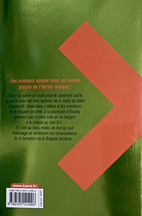 À bord du navire en route pour le continent caché, le conflit entre les trois factions de la mafia de Kakin s’intensifie. Deux clans s’allient et les membres de la Brigade fantôme, à la poursuite d’Hisoka, prennent part à cette lutte en se lançant à la chasse au clan Ei-I.Et c’est au beau milieu de tout ça que Nobunaga se remémore les circonstances de la formation de la Brigade fantôme…