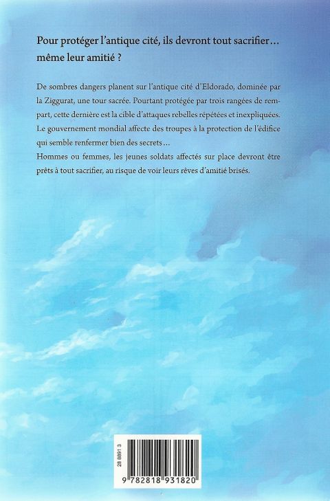 Pour protéger l'antique cité, ils devront tout sacrifier. même leur amitié ? De sombres dangers planent sur l'antique cité d'Eldorado, dominée par la Ziggurat, une tour sacrée. Pourtant protégée par trois rangées de rempart, cette dernière est la cible d'attaques rebelles répétées et inexpliquées. Le gouvernement mondial envoie des troupes à la protection de l'édifice qui semble renfermer bien des secrets. Hommes ou femmes, les jeunes soldats affectés sur place devront être prêts à tout sacrifier, au risque de voir leurs rêves d'amitié brisés.