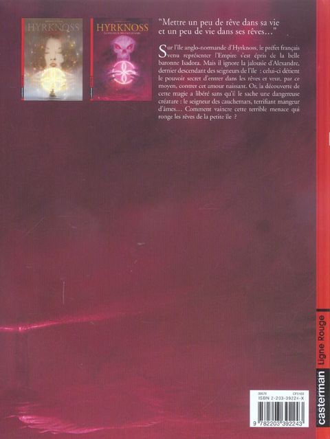 " Mettre un peu de rêve dans sa vie et un peu de vie dans ses rêves... " Sur l'île anglo-normande d'Hyrknoss, le préfet français venu représenter l'Empire s'est épris de la belle baronne Isadora. Mais il ignore la jalousie d'Alexandre, dernier descendant des seigneurs de l'île : celui-ci détient le pouvoir secret d'entrer dans les rêves et veut, par ce moyen, contrer cet amour naissant. Or, la découverte de cette magie a libéré sans qu'il le sache une dangereuse créature : le seigneur des cauchemars, terrifiant mangeur d'âmes... Comment vaincre cette terrifiante menace qui ronge les rêves de la petite île ?