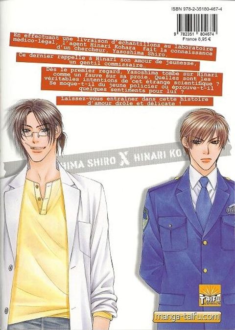 Hinari, un jeune détective de police effectue une livraison d'échantillons au laboratoire médico-légal. Il y rencontre un chercheur, Yasoshima Shiro qui rappelle à Hinaro son premier amour... Frappé au coeur dès le premier regard, Yasoshima tombe sur Hinari comme un fauve sur sa proie. Bien qu'il ait du mal à l'admettre, ce dernier n'est pas aussi insensible que ça au charme de Yasoshima. Pourra-t-il résister longtemps à cet étrange et beau scientifique ?! Laissez-vous entraîner dans cette histoire d'amour drôle et délicate !