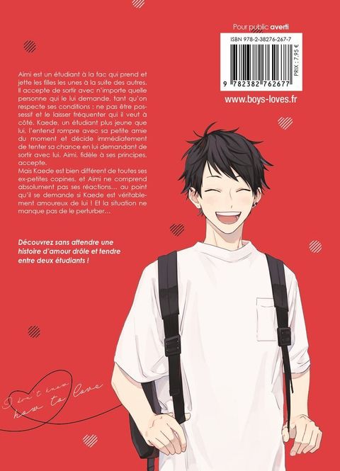 Aimi est un étudiant à la fac qui prend et jette les filles les unes à la suite des autres. Il accepte de sortir avec n'importe quelle personne qui le lui demande, tant qu'on respecte ses conditions : ne pas être possessif et le laisser fréquenter qui il veut à côté. Kaede, un étudiant plus jeune que lui, l'entend rompre avec sa petite amie du moment et décide immédiatement de tenter sa chance en lui demandant de sortir avec lui. Aimi, fidèle à ses principes, accepte. Mais Kaede est bien différent de toutes ses ex-petites copines, et Aimi ne comprend absolument pas ses réactions... au point qu'il se demande si Kaede est véritablement amoureux de lui ! Et la situation ne manque pas de le perturber...