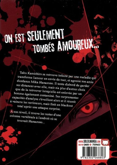 Quand un virus pousse à massacrer l'être aimé, il est indispensable de résister à la tentation ! Car, si celui qui vous aime est infecté, une expression prend alors tout son sens : « Aimer à en mourir ». Kamishiro Taku aime prendre soin des plantes du lycée et son amie Mika aime le taquiner sur le sujet. Elle ignore tout des sentiments de son ami. Mais sa vie bascule le jour où il tente d'intervenir lors d'une agression dans la rue. Un curieux virus va ainsi le contaminer. Dès lors, de terribles envies de meurtre l'envahissent en présence de Mika. Chaque moment passé à ses côtés est l'objet de visions meurtrières d'une rare cruauté. Pourtant, il va devoir affronter ses instincts et trouver un remède au plus vite !