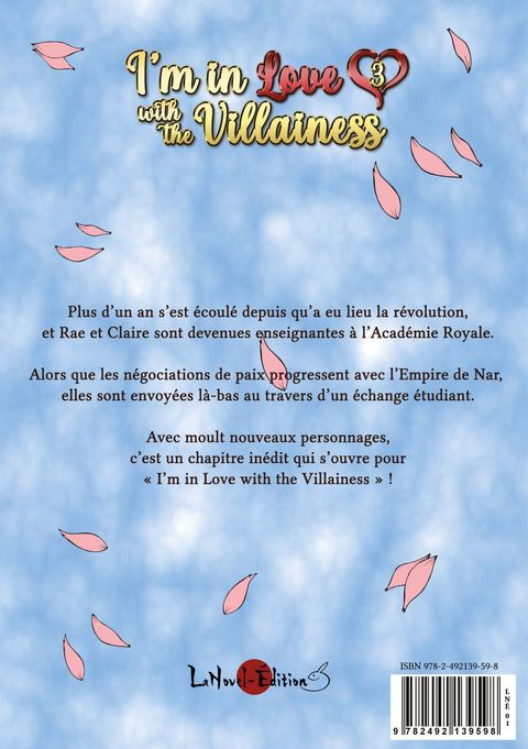 Plus d’un an s’est écoulé depuis qu’a eu lieu la révolution, et Rae et Claire sont devenues enseignantes à l’Académie Royale. Alors que les négociations de paix progressent avec l’Empire de Nar, elles sont envoyées là-bas au travers d’un échange étudiant.Avec moult nouveaux personnages, c’est un chapitre inédit qui s’ouvre pour « I’m in Love with the Villainess » !
