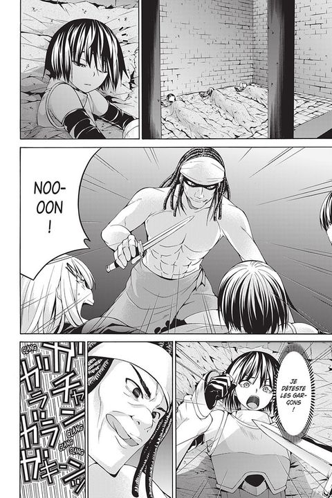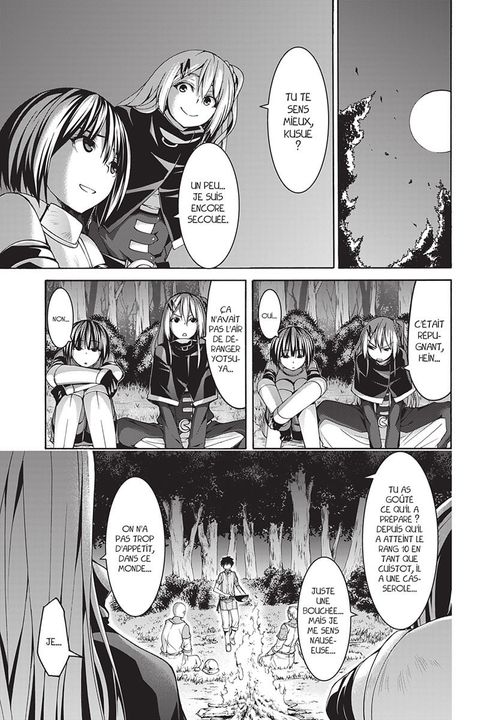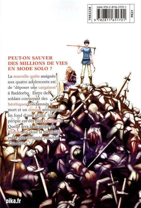 La nouvelle quête assignée aux quatre adolescents est de déposer une cargaison à Radedaube. Entre des soldats convoyant des hérétiques condamnés à mort et un donjon antique au fin fond d'une grotte, leur périple est des plus périlleux ! Quelle est la méthode secrète de Yûsuke, lui dont la mentalité est la plus éloignée possible d'un héros ?