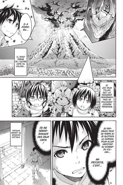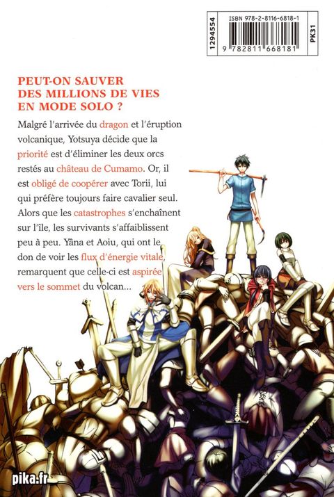 <div style="text-align: justify;">Malgré l’arrivée du dragon et l’éruption volcanique, Yotsuya décide que la priorité est d’éliminer les deux orcs restés au château de Cumamo. Or, il est obligé de coopérer avec Torii, lui qui préfère toujours faire cavalier seul. Alors que les catastrophes s’enchaînent sur l’île, les survivants s’affaiblissent peu à peu. Yâna et Aoiu, qui ont le don de voir les flux d’énergie vitale, remarquent que celle-ci est aspirée vers le sommet du volcan...</div>
