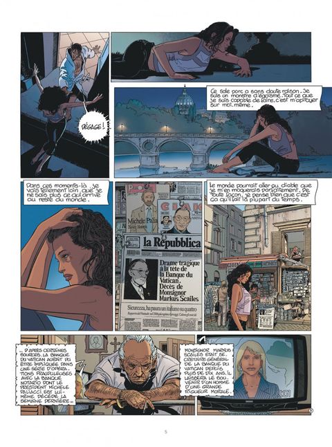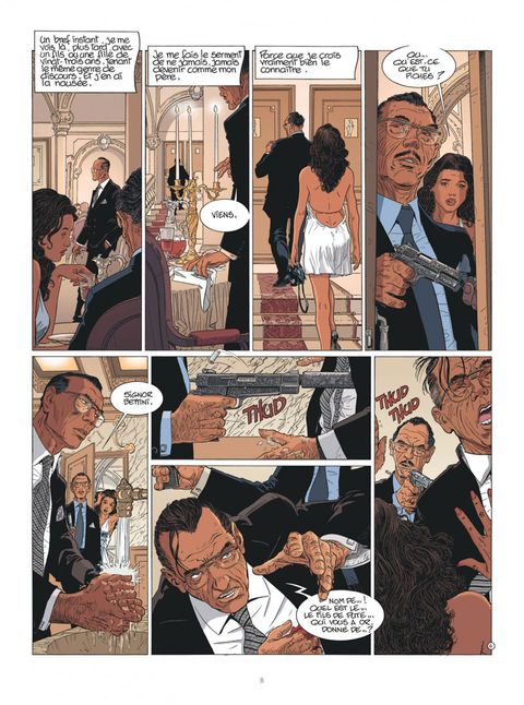 «Trou noir»... En astrophysique, un trou noir est un objet massif dont le champ gravitationnel est si intense qu'il empêche toute forme de matière ou de rayonnement de s'en échapper. Ils ne sont pas directement observables, mais plusieurs techniques d'observation indirecte (...) permettent d'étudier les phénomènes qu'ils induisent sur leur environnement. «All Watcher»... Nom propre ou nom de code, nul ne le sait. Seuls quelques initiés des hautes sphères de la finance internationale en ont entendu parler. Véritable trou noir tapi au sein des marchés financiers, All Watcher absorbe, chaque année, des centaines de millions de dollars. Échappant à tout contrôle, à toute régulation, cette mystérieuse entité aspire des fortunes colossales, ne laissant que quelques infimes traces de ses interactions avec les marchés - financiers, immobiliers, boursiers... All Watcher représente le pire cauchemar de Larry B. Max et de ses collègues de l'I.R.$.. Cependant, avec de la persévérance, une piste, si infime soit-elle, peut toujours porter ses fruits. Aux quatre points du monde, Larry B. Max et quelques autres ont croisé le chemin de ce mythe moderne. Chacun a ses raisons propres, mais tous ont un objectif commun: démasquer All Watcher ou être, à leur tour, absorbés par le trou noir ! Après avoir imaginé la menace ultime pour son héros, Stephen Desberg a choisi de lui donner un écrin à sa mesure ! C'est ainsi qu'est née «All Watcher», série parallèle à «I.R.$.». Sept albums, autant de personnages et presque autant de dessinateurs pour mener l'enquête autour d'un Larry B. Max présent en fil rouge de cette intrigue qui nous dévoile une nouvelle fois les rouages de la criminalité financière. TOME 1: «ANTONIA» À 23 ans, Antonia a progressivement perdu goût à la vie. À la dérive, elle cherche l'oubli au fond des bouteilles et des cendriers, ou dans les bras et les promesses de bellâtres d'un soir. Inquiet, son père décide de prendre la situation en main. Antonia découvre alors que son géniteur n'est pas le fonctionnaire falot qu'elle imaginait, mais un tueur à gages au service de la famille Valeroni, les véritables patrons de Rome. En tant que seule héritière, il lui incombe de porter le flambeau familial avec la même efficacité. Et ce n'est pas le travail qui manque ! L'enquête un peu trop intrusive de Larry B. Max sur les loges secrètes du Vatican a fait remonter trop de cadavres à la surface et il est temps de faire le ménage... Entre manipulations, jeux de pouvoir et intérêts cachés, Antonia vient de mettre le doigt dans un engrenage impitoyable. Elle ne sait pas encore que l'avenir lui réserve des dangers bien pires ! Si certains points de l'histoire vous disent quelque chose, rien de plus normal: «All Watcher» est une série dérivée d'«I.R.$.».