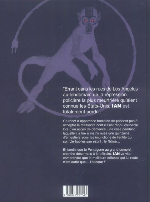 Le cerveau en proie à l'horrible vision des émeutiers qu'il a massacrés, IAN, l'androïde le plus perfectionné jamais inventé, a décidé de mettre fin à son existence. Horrifié par sa puissance de destruction, le Pentagone a par ailleurs ordonné son élimination... De la tension, de l'action, de l'émotion. Un angoissant chassé-croisé de situations fictives et de perspectives plausibles imaginé par le scénariste du Marquis d'Anaon et efficacement mis en image par le dessinateur de Berceuse Assassine.