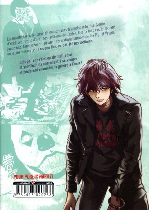 La société Farm, au coeur de nombreuses légendes urbaines (vente d'esclaves, trafic d'organes, système de caste), fait sa loi dans la société japonaise. Une lycéenne, pirate informatique surnommé Ice Pig, et Vespa, un jeune homme sans revenu fixe, en ont été les victimes. Unis par une relation de maîtresse et serviteur, ils cherchent à se venger et déclarent la guerre à Farm !