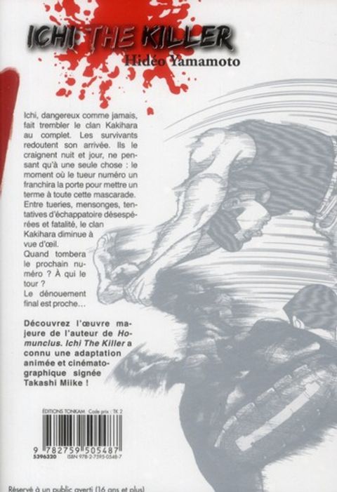 Takayama s’est fait tordre le cou par le vieux qui n’a en fait que la trentaine. Le clan Kakihara se retrouve en mauvaise posture avec la mort d’un des jumeaux après un combat titanesque face à Ichi. Pendant ce temps, Kaneko sympathise avec Ichi.