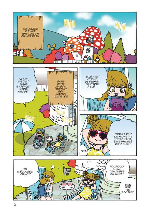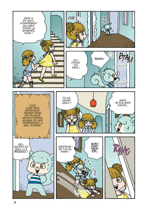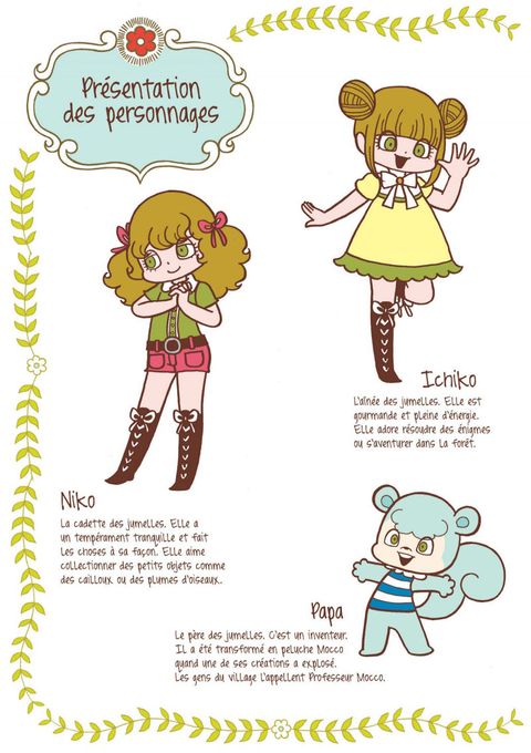 Ichiko et Niko sont des jumelles qui vivent dans une drôle de maison champignon. C'est normal : leur père est inventeur et il crée toutes sortes de machines farfelues pour rendre service à la ville. Mais un jour, la foudre s'abat sur leur maison et leur père devient une peluche ! La peluche Mocco bouge, parle, continue de mettre au point de nouvelles inventions... et la vie d'Ichiko et de Niko n'en devient que plus amusante !