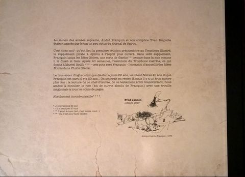 Idées Noires de Franquin, le Spirituel Papa de Gaston Lagaffe, Marsupilami et Spirou, nous Révèle une Nouvelle Facette du Talent de ce Merveilleux Dessinateur, Mis au Service d'un Humour Féroce, Summum d'Humour Noir. Franquin nous Démasque les Visages Hideux de notre Barbarie Civilisée : le Nucléaire, la Peine de Mort, la Guerre. Celle des Généraux, Celle des Marchands de Canons, Celle des Troufions, de la Troisième Guerre Mondiale et Autres Gentillesses du Même Tonneau.