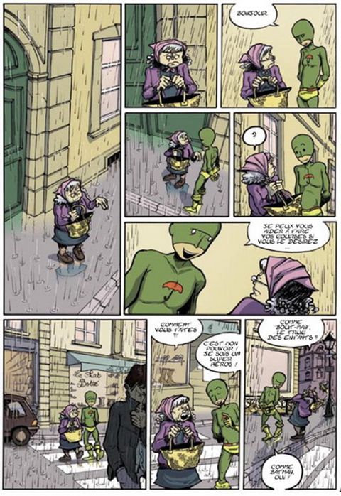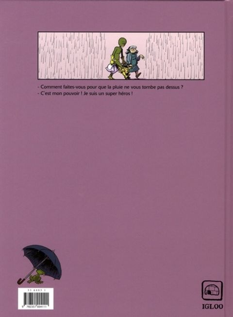 Pas facile d'être un super-héros quand son seul pouvoir n'arrête que la pluie. Enfin, "arrêter" c'est un bien grand mot. Disons, la pluie ne le mouille pas. Peu de chance de sauver le monde avec un tel pouvoir... À part narguer les gens en terrasse les jours de pluie et porter les courses des vieilles dames, ce pouvoir se révèle finalement d'une utilité assez limité. Parfois, il peut même devenir une calamité si, comme moi, vous tombez amoureux d'une fille qui aime danser sous la pluie ou croisez un énergumène aux idées farfelues... Du coup, je ne peux pas danser avec elle, et je me retrouve accroché à un zodiac tirant des jeunes filles en ski nautique sur la Seine. Oui, comme ça elles ne sont pas mouillées. "Et on va se faire un max de blé !" qu'il m'a dit... Avec Il fera beau demain François Duprat nous offre une petite fable burlesque et tendre, un quotidien mâtiné de fantastique et du plus improbable des super héros : le bien nommé ANTI-PLUIE MAN... Sans oublier une grenouille qui, elle aussi, aime la pluie...