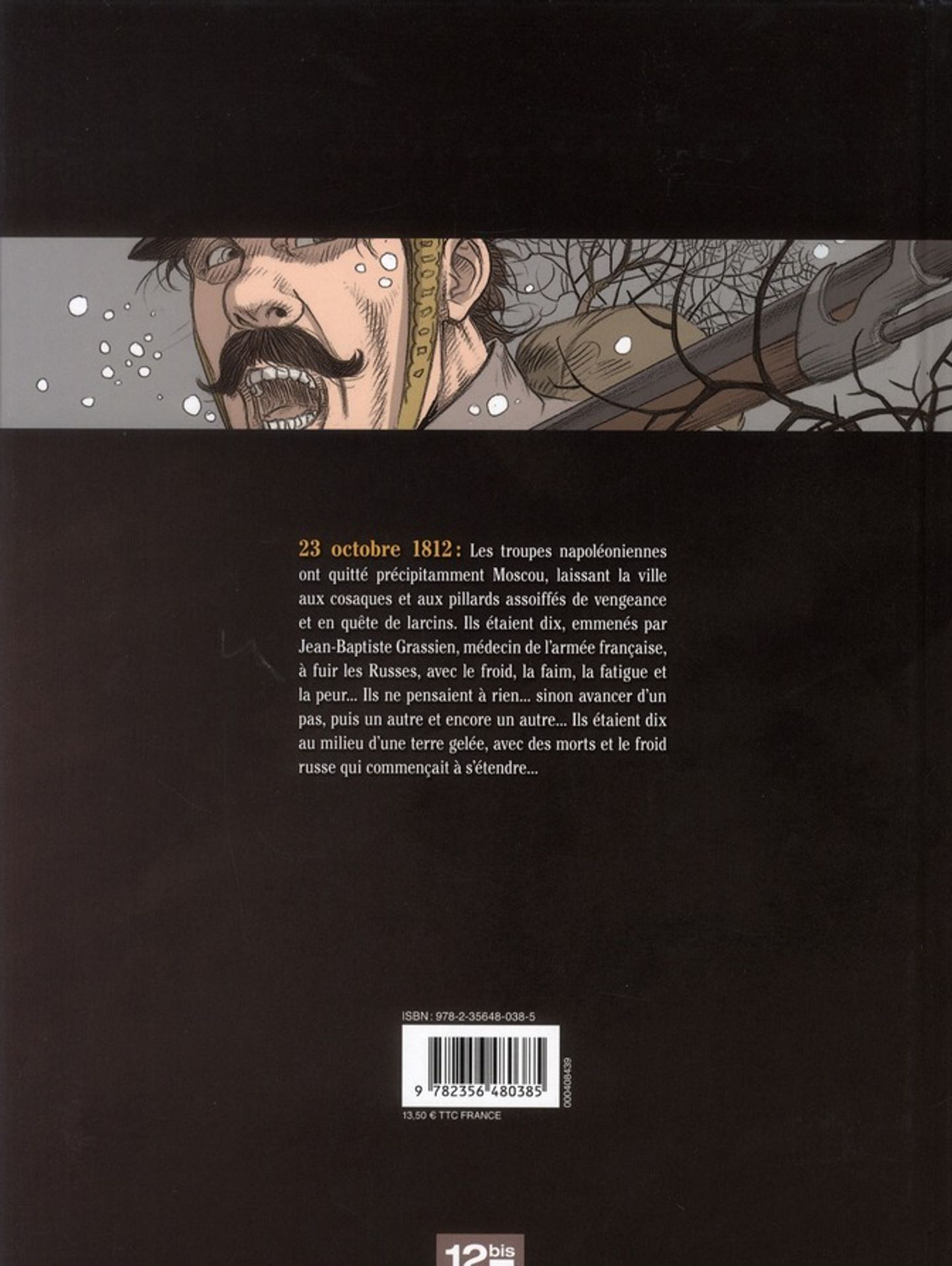 Russie, Septembre 1812. Alors que l'armée Napoléonienne avance sur Moscou, les russes incendient la ville. Le chaos s'empare des lieux, entre pillages, lynchages et règlements de comptes. Réfugié dans un palais moscovite où il soigne des soldats, Jean-Baptiste Grassien, chirurgien de l'armée Napoléonienne, est contraint de prendre la fuite en compagnie de ses blessés, notamment son ami Philippe de Marcy et une jeune russe blessée aux yeux, Marouchka Protopkine. Ils sont déterminés à rejoindre la Garde Impériale. Sur la route, ils sont rejoints par Charles Pietry, précepteur d'une famille moscovite et trois soldats, à bord d'un chariot. Ils décident de ne former qu'un seul groupe, plus sûr et plus rapide, grossi au fur et à mesure par des trainards. Ils sont alors quinze. Mais rapidement, Philippe de Marcy, découvre dans le chariot une véritable fortune. Il n'aura pas le temps de dévoiler le secret, assassiné par l'un des trois soldats. Une nuit, les quatre hommes (Pietry et les trois soldats) réveillent le groupe et leur volent leurs armes et leurs bottes avant de s'enfuir, les laissant à la merci de l'immensité de l'hiver russe. Arrivés au bord de la Berezina, dix jours plus tard, alors qu'ils étaient dix, ils ne sont plus que quatre. Quatre à avoir survécu au froid, aux loups ou aux cosaques, quatre à franchir la rivière sur un radeau..