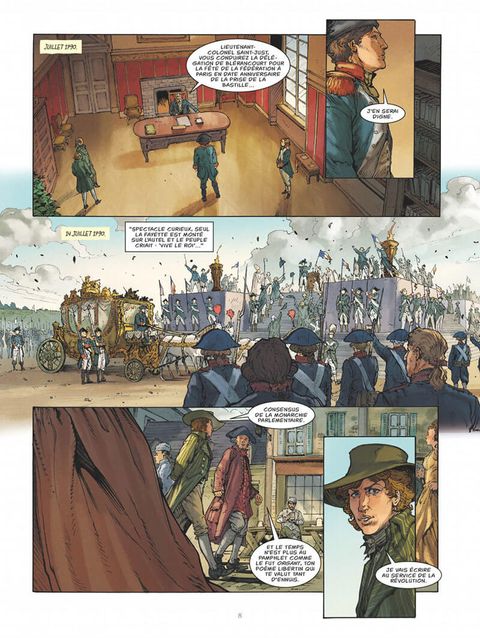 L’Archange de la Révolution. Captivant destin que celui de Saint Just, aussi bref qu’intense, fascinant par sa jeunesse, sa radicalité et ses sentences redoutées. D'une éloquence remarquable, il se distingue en prônant avec intransigeance des principes d’égalité et de vertu. Il se fait également remarquer par son efficacité en tant que commissaire téméraire aux armées révolutionnaires, participant à la victoire des armées républicaines à Fleurus. Plus jeune élu député de la Convention nationale, à la Montagne, il incarne l’esprit de la Révolution en étant l'inspirateur de la Déclaration des droits de l'homme et du citoyen de 1793. Surnommé l'Archange de la Terreur par Michelet, il est guillotiné lors de la crise du 9 thermidor, suivant Robespierre à qui il reste fidèle jusqu’à la mort. En s’attelant à narrer la vie d’un des personnages les plus célèbres - et clivants - de l’histoire de la Révolution française, Noël Simsolo accompagné de l'historien Jean Tulard nous livre un portrait subtil de cette figure emblématique raconté avec fougue et sérieux par Michael Malatini.