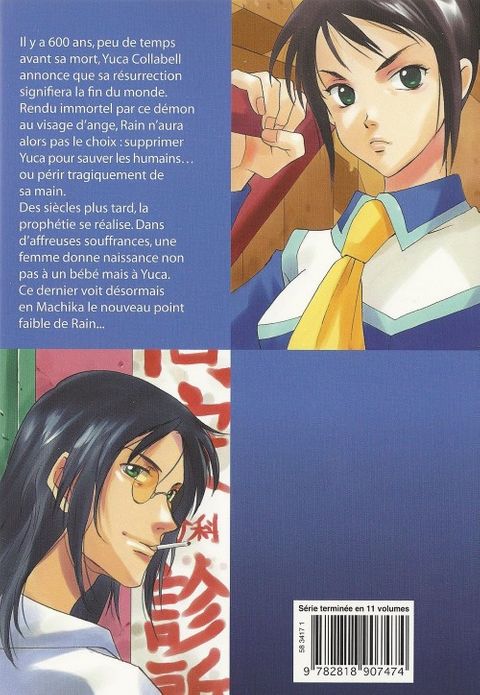 Grand souffle d'aventure sur le shôjo ! Il y a 600 ans, peu de temps avant sa mort, Yuca Collabell annonce que sa résurrection signifiera la fin du monde. Rendu immortel par ce démon au visage d'ange, Rain n'aura alors pas le choix : supprimer Yuca pour sauver les humains. ou périr tragiquement de sa main. Des siècles plus tard, la prophétie se réalise. Dans d'affreuses souffrances, une femme donne naissance non pas à un bébé mais à Yuca. Ce dernier voit désormais en Machika le nouveau point faible de Rain...