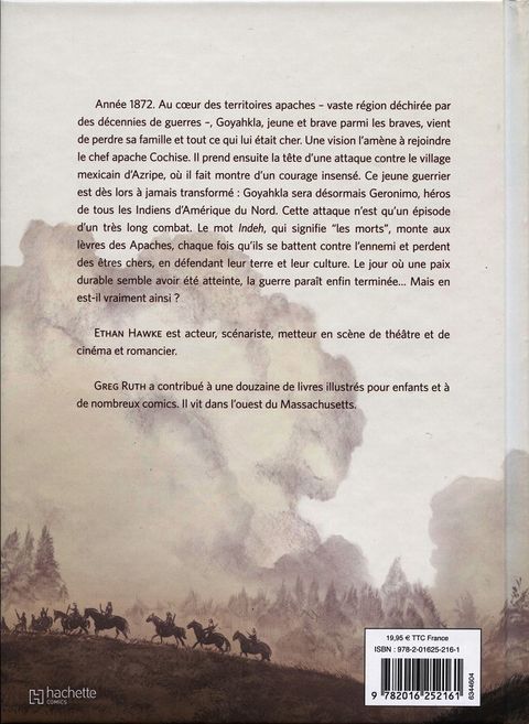 "Indeh" est le récit dense et documenté de 2 nations en guerre : celle des Apaches contre celle de colons. Cet album fait vivre, aux côtés de Géronimo et de Cochise, les événements tragiques qui ont débutés en 1872 et marqués à jamais l'histoire des Etats-Unis. Une fresque historique, épique et envoûtante, scénarisé par l'acteur et réalisateur Ethan Hawke.