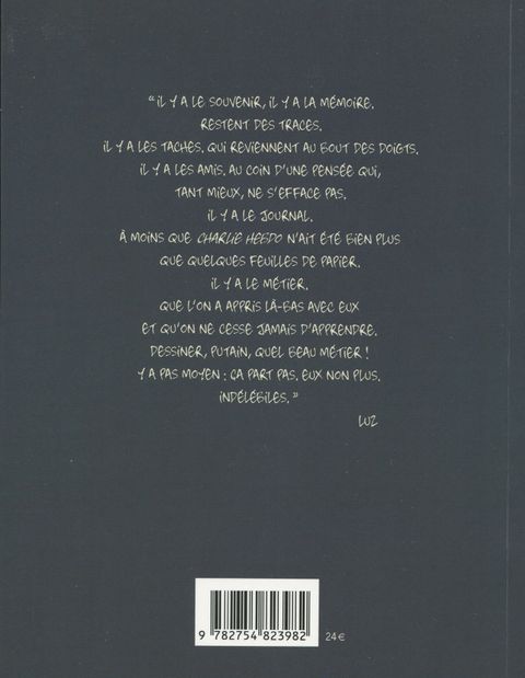 De 1992 à 2015, Luz a dessiné toutes les semaines pour Charlie Hebdo. Jeune provincial puceau arrivé à Paris,il rencontre Cabu qui le prend sous son aile et l'entraîne à La Grosse Bertha, qui devient Charlie Hebdo. Avec le temps il devient l'un des piliers du journal. Dans un long rêve, il égrène ses souvenirs : ses amis, Charb, Tignous, Gébé, Catherine Meurisse..., le premier reportage en banlieue, aux USA, la tournée en Bosnie en guerre avec le chanteur Renaud, son infiltration au RPR, les manifs... Et la vie de bureau, les bouclages, les unes, Johnny. Enfin, il y a surtout la présence de Cabu, le mentor, jamais avare de conseils, qui essaie par exemple de lui apprendre à dessiner discrètement dans sa poche.
