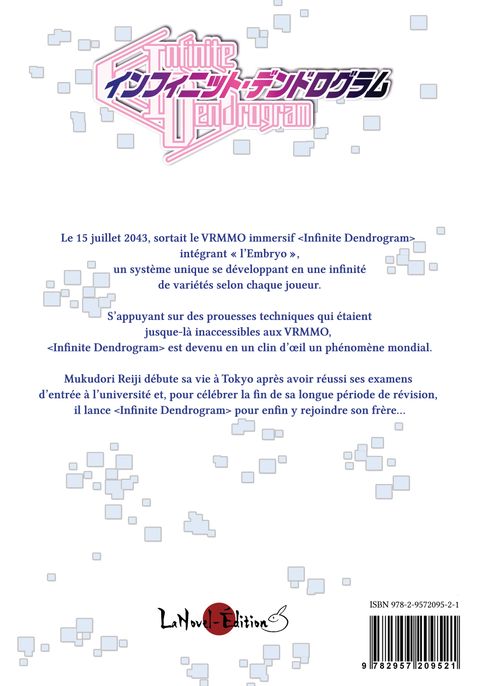 Le 15 juillet 2043, sortait le VRMMO immersif <Infinite Dendrogram> intégrant «l'Embryo», un système unique se développant en une infinité de variétés selon chaque joueur. S'appuyant sur des prouesses techniques qui étaient jusque-là inaccessibles aux VRMMO, <Infinite Dendrogram> est devenu en un clin d'œil un phénomène mondial. Mukudori Reiji débute sa vie à Tokyo après avoir réussi ses examens d'entrée à l'université et, pour célébrer la fin de sa longue période de révision, il lance <Infinite Dendrogram> pour enfin y rejoindre son frère...