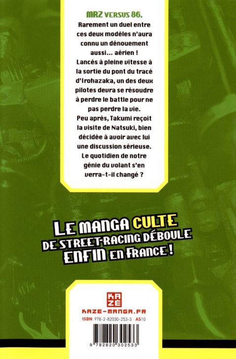 Haut les coeurs ! Une solide amitié est parfois le meilleur des remèdes contre une déception amoureuse. C'est ce que se dit Itsuki, plus proche que jamais d'un Takumi qui a repris le circuit de la victoire. Mais avant de relever de nouveaux défis, le jeune prodige devra prendre sa revanche sur le seul street racer à l'avoir vaincu... Sa maîtrise du nouveau moteur de la Trueno sera-t-elle de taille face à la surpuissante Lan-Evo III ? Qui du petit génie et de l'expert chevronné l'emportera cette fois ?