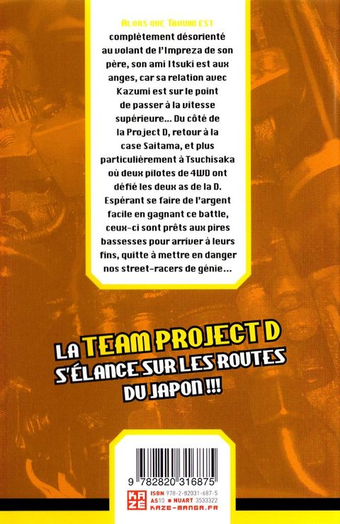 Alors que Takumi est complètement désorienté au volant de l'Impreza de son père, son ami Itsuki est aux anges, car sa relation avec Kazumi est sur le point de passer à la vitesse supérieure... Du côté de la Project D, retour à la case Saitama, et plus particulièrement à Tsuchisaka où deux pilotes de 4WD ont défié les deux as de la D. Espérant se faire de l'argent facile en gagnant ce battle, ceux-ci sont prêts aux pires bassesses pour arriver à leurs fins, quitte à mettre en danger nos street-racers de génie.