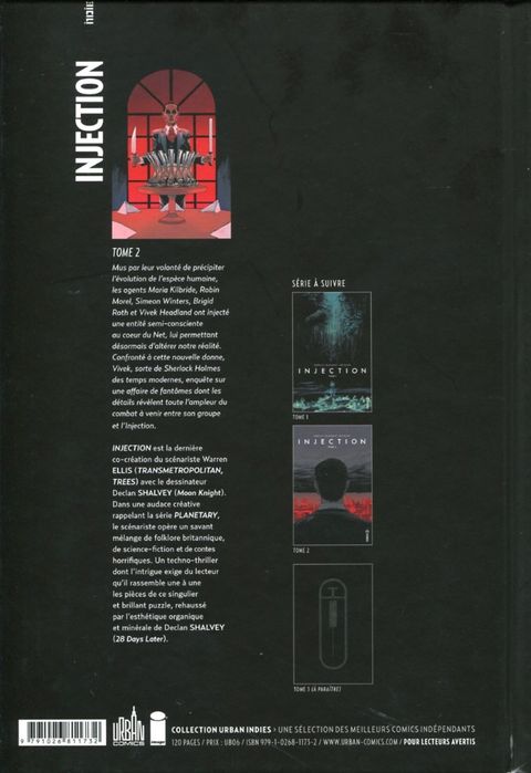 Mus par leur volonté de précipiter l'évolution de l'espèce humaine, les agents Maria Kilbride, Robin Morel, Simeon Winters, Brigid Roth et Vivek Headland ont injecté une entité au coeur du Net, lui permettant désormais d'altérer notre réalité. Confronté à cette nouvelle donne, Vivek, sorte de Sherlock Holmes des temps modernes, enquête sur une affaire de fantômes dont les détails révèlent toute l'ampleur du combat à venir entre son groupe et l'Injection. Contenu : INJECTION vol.2 (#6-10).