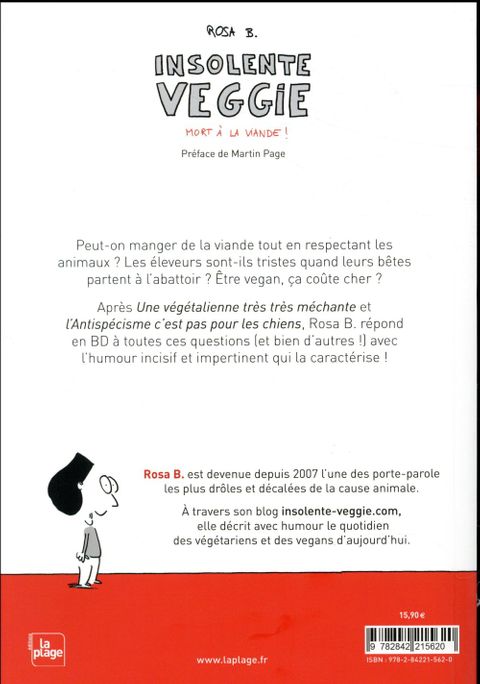 - Peut-on manger de la viande tout en respectant les animaux ? Les éleveurs sont-ils tristes quand leurs bêtes partent à l'abattoir ? Être vegan, ça coûte cher ? Rosa B répond à toutes ces questions (et bien d'autres !), avec son humour caustique et décapant ! - L'auteure aborde avec humour et esprit militant ce qui fait le quotidien des végétariens, des végétaliens et des vegans aujourd'hui : - végétarisme, végétalisme, véganisme. - éleveurs, abattoirs, bouchers, chasseurs. - carnisme, spécisme, antispécisme...