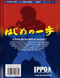 La tension pour Ippo atteint son paroxysme. En finale du tournoi Classe A, dès le premier round, Ippo semble en danger ! II cherche désespérément à se protéger des attaques puissantes et précises de Wolf... Sera-t-il victime des crocs du loup avant d'avoir pu défendre ses chances? Contre-attaque Ippo! Ne recule pas !