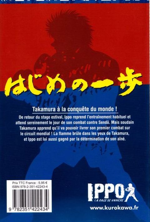 De retour du stage estival, Ippo reprend l'entraînement habituel et attend sereinement le jour de son combat contre Sendô. Mais soudain Takamura apprend qu'il va pouvoir livrer son premier combat sur le circuit mondial ! La flamme brûle dans les yeux de Takamura, et Ippo est lui aussi gagné par la détermination de son aîné.