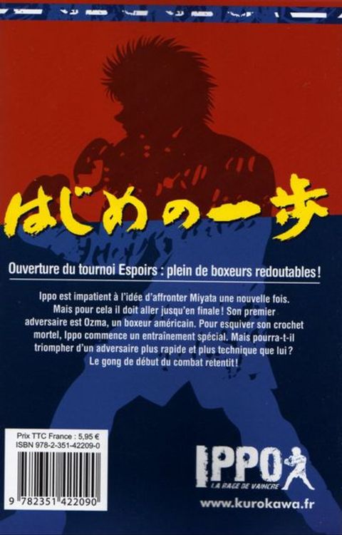 Deux combats importants attendent Ippo dans ce volume: le premier face à un vétéran de la triche, Fujiwara, mais surtout face à Jason Ozuma, un métisse américano-japonais au punch destructeur. L'entraînement spécial sera t'il suffisant pour espérer être sélectionné parmi les jeunes champions de l'année oe
