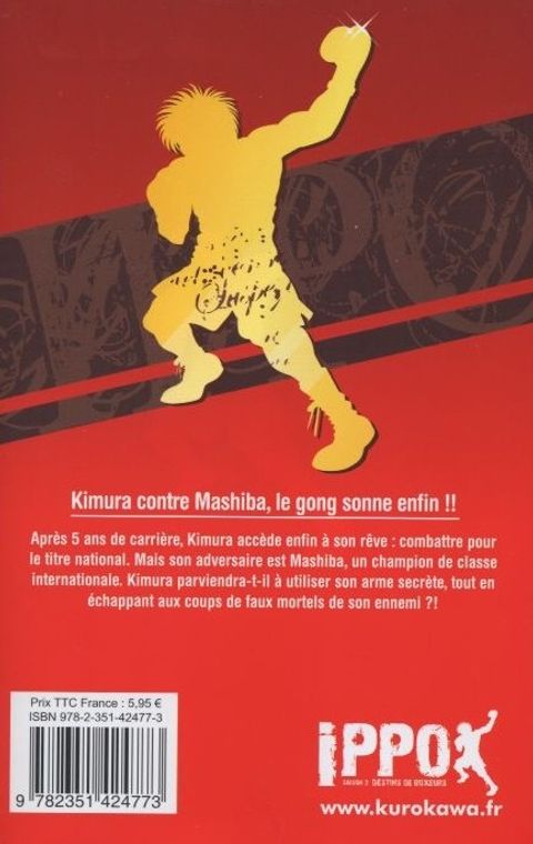 Kimura contre Mashiba, le gong sonne enfin !! Après 5 ans de carrière, Kimura accède enfin à son rêve : un combat pour le titre national. Mais son adversaire est Mashiba, un champion de classe internationale. Kimura parviendra t'il à utiliser son arme secrète, tout en échappant aux coups de faux mortels de son ennemi !?