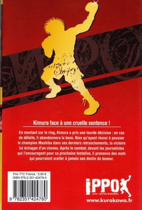 Kimura était monté sur le ring de son combat pour le titre avec la décision d'abandonner la boxe en cas de défaite. Bien qu'il ait réussi à pousser le Champion Mashiba dans ses derniers retranchements, la victoire lui échappe d'un cheveu. C'est pourquoi après le combat, devant les journalistes qui l'encouragent pour sa prochaine tentative, il prononce le mot « retraite »...