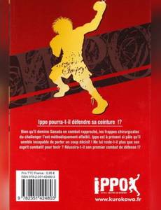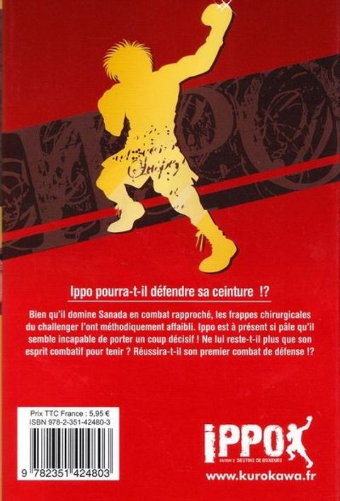 Ippo pourra t'il défendre sa ceinture !? Bien qu'il domine Sanada en combat rapproché, les frappes chirurgicales du Challenger l'ont méthodiquement affaibli. Ippo est à présent si pâle qu'il semble incapable de porter un coup décisif ! Ne lui reste-t'il plus que son esprit combatif pour tenir ? Réussira t'il son premier combat de défense ?