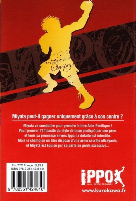 Miyata peut-il gagner uniquement avec son contre ? Miyata va combattre pour le titre Asie-Pacifique! Pour prouver l'efficacité du style de boxe pratiqué par son père, et tenir sa promesse envers Ippo, il doit gagner. Mais le Champion en titre dispose d'une arme secrète effrayante, et Miyata est épuisé par sa perte de poids excessive...
