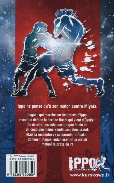 Ippo ne pense qu'à son match contre Miyata. Itagaki, qui marche sur les traces d'Ippo, reçoit un défi de la part de Hoshi qui vient d'Ôsaka ! Ce dernier possède une attaque fatale en un coup que même Sendô, son aîné, craint. Mais la rencontre va se dérouler à Ôsaka ! Comment Itagaki entamera-t-il ce match malgré la pression ! ?