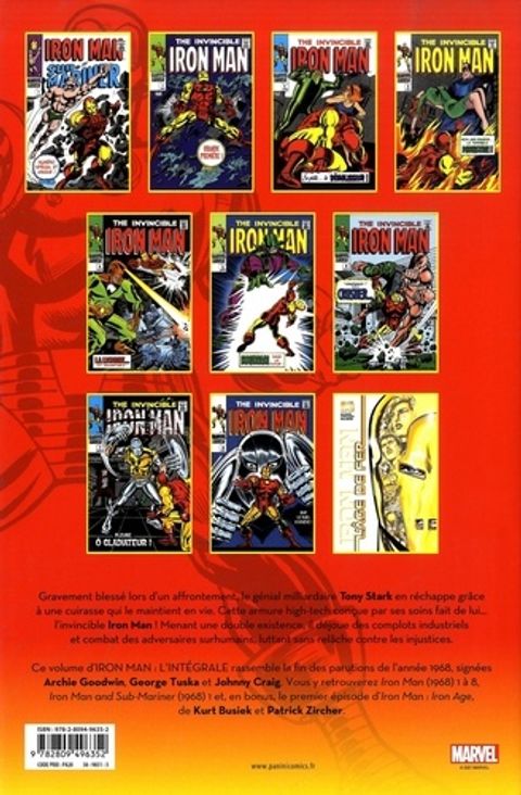 Une nouvelle ère commence pour Tony Stark. Dans les trois premières Intégrales consacrées au personnage, nous vous avons présenté les aventures d'Iron Man tirées de la série Tales of Suspense, mais en 1968, le héros de métal a enfin sa propre série. Pour fêter ça, Marvel lui offre l'un de ses plus grands scénaristes de l'époque : Archie Goodwin. Le premier épisode, dessiné par le légendaire Gene Colan, est totalement inédit en France, de même que la courte histoire coécrite par Stan Lee. Le reste de cet album est aussi exceptionnel puisque les épisodes qu'il contient n'ont pas été réédités depuis les années 70 !