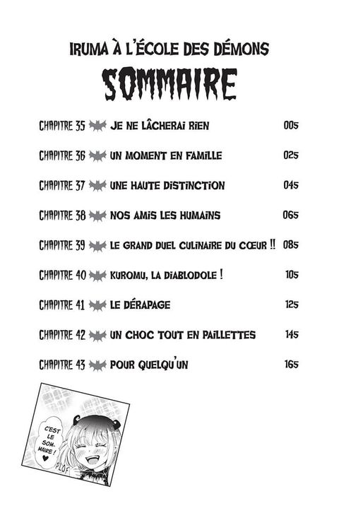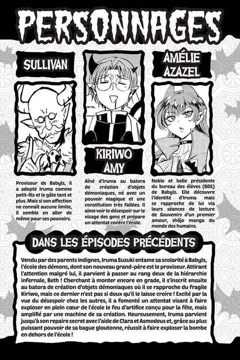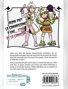 Après une fête des batora mouvementée s'achevant sur un époustouflant bouquet final, qui vaut à Iruma une visite des hautes autorités infernales dont il se serait bien passé, c'est le moment de se détendre un peu ! Iruma s'est déjà fait plein d'amis dans le monde des démons. Mais cette fois, le garçon humain qui n'aime pas attirer l'attention à l'école va rencontrer Kuromu, l'idole diabolique qui a consacré sa vie à être sous le feu des projecteurs...