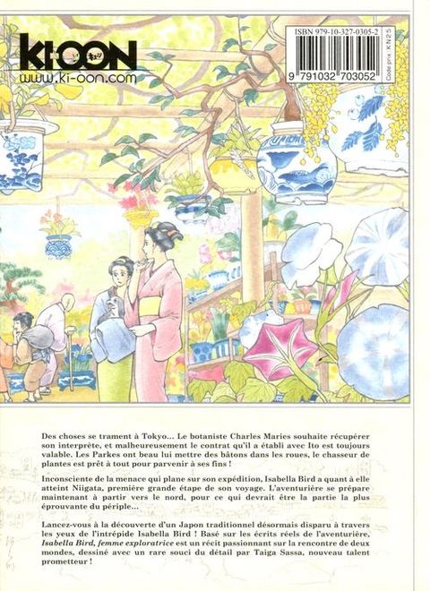 Des choses se trament à Tokyo... Le botaniste Charles Maries souhaite récupérer son interprète, et malheureusement le contrat qu'il a établi avec Ito est toujours valable. Les Parkes ont beau lui mettre des bâtons dans les roues, le chasseur de plantes est prêt à tout pour parvenir à ses fins ! Inconsciente de la menace qui plane sur son expédition, Isabella Bird a quant à elle atteint Niigata, première grande étape de son voyage. L'aventurière se prépare maintenant à partir vers le nord, pour ce qui devrait être la partie la plus éprouvante du périple...