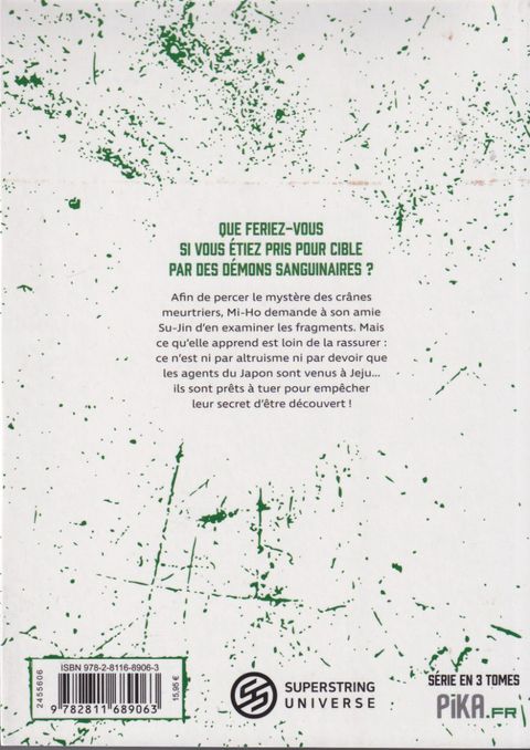 <div>Afin de percer le mystère des crânes meurtriers, Mi-Ho demande à son amie Su-Jin d’en examiner les fragments. Mais ce qu’elle apprend est loin de la rassurer : ce n’est ni par altruisme ni par devoir que les agents du Japon sont venus à Jeju... ils sont prêts à tuer pour empêcher leur secret d’être découvert !  </div>