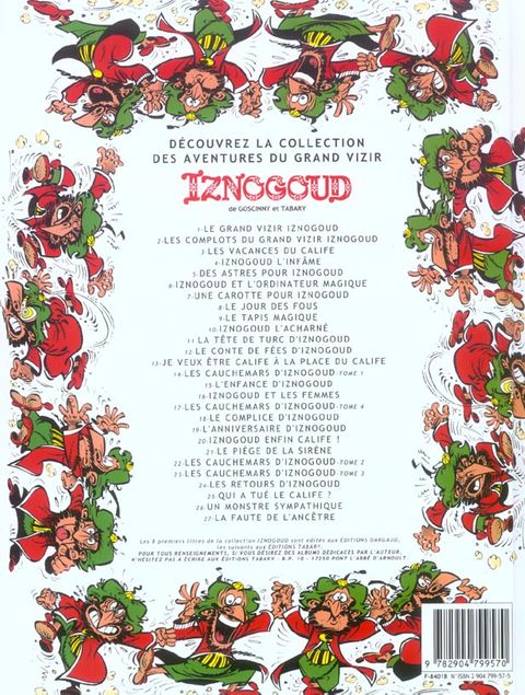 Série culte : Les aventures d'Iznogoud font partie du patrimoine de la bande dessinée. Ces contes des 1001 gags ont gardé toute leur saveur et restent d'une brûlante actualité. Une célèbre formule : « Je veux être calife à la place du calife ! » est l’obsession d'Iznogoud. Cette expression inventée par Goscinny est aujourd'hui passée dans notre langage quotidien. Personnage mythique : Iznogoud a été créé par deux géants de la bande dessinée d'humour René Goscinny (1926-1977) à qui l'on doit aussi Astérix, Lucky Luke, Le Petit Nicolas. et le dessinateur Jean Tabary (1930-2011) également auteur de Totoche, Corinne et Jeannot.