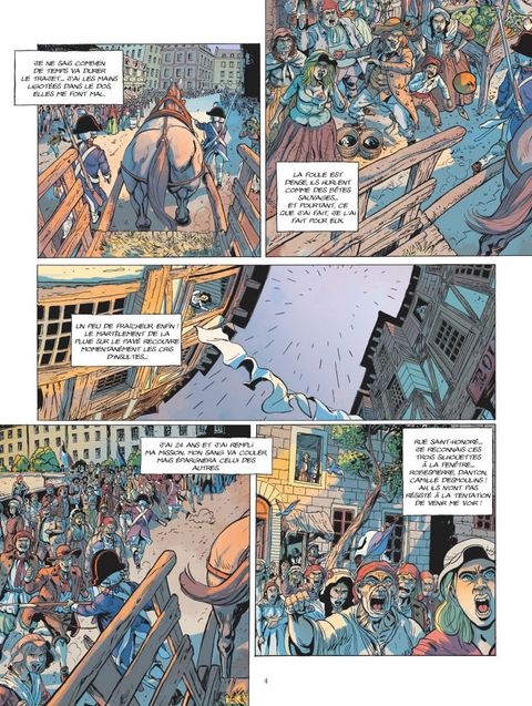 Le 13 juillet 1793, Charlotte Corday assassine au couteau Jean-Paul Marat dans sa baignoire. Ils ne se connaissent pas, ne se seront vu que cinq minutes en tout et pour tout. C'est le temps qu'il aura fallu pour que tout bascule... Mais qui était Charlotte Corday, et pourquoi a-t-elle tué « L'Ami du Peuple » ? Bien que favorable aux idées révolutionnaires, cette jeune femme originaire de Caen considère les responsables de la Terreur comme le véritable poison de la société. Elle s'imagine que, par sa mort, Marat en sauvera des milliers. L'Histoire lui donnera tort... Mettant en scène un dialogue imaginaire entre la victime et son assassin, LF Bollée et Olivier Martin reviennent en détail sur la journée du meurtre de Marat, et sur les motivations qui ont pu pousser une jeune femme de bonne famille à commettre un acte aussi terrible.