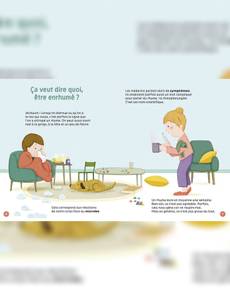 Les enfants se questionnent sur les maladies en ces temps de pandémie : mais qu'est ce que ça veut dire pour eux ? Ça veut dire quoi être enrhumé ? C'est quoi un microbe ? Comment on l'attrape? Ce titre répond à ces question de manière ludique et à hauteur d'enfant, grâce à : - une ouverture et fermeture de thématique par une petite planche BD. - Une double page par question d'enfant. - Et une double page récapitulative « Alors finalement, je fais comment ? » par un expert du domaine. Un documentaire qui explique les maladies, les virus ou autres microbes aux jeunes enfants.