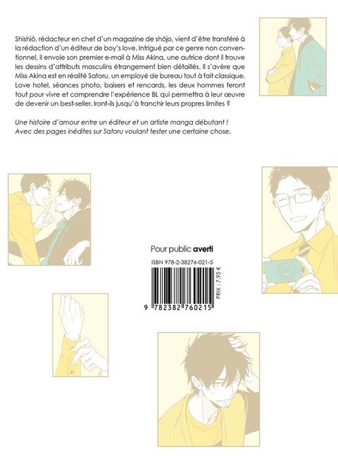 Shishiô, rédacteur en chef d'un magazine de shôjo, vient d'être transféré à la rédaction d'un éditeur de boy's love. Intrigué par ce genre non conventionnel, il envoie son premier e-mail à Miss Akina, une autrice dont il trouve les dessins d'attributs masculins étrangement bien détaillés. Il s'avère que Miss Akina est en réalité Satoru, un employé de bureau tout à fait classique. Love hotel, séances photo, baisers et rencards, les deux hommes feront tout pour vivre et comprendre l'expérience BL qui permettra à leur oeuvre de devenir un best-seller. Iront-ils jusqu'à franchir leurs propres limites ?