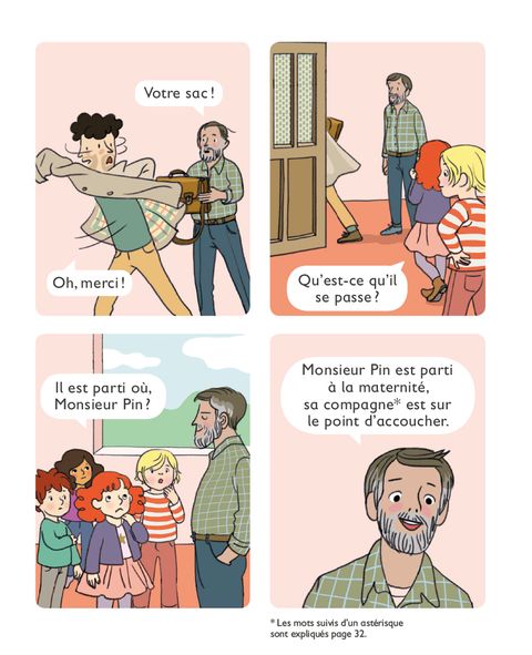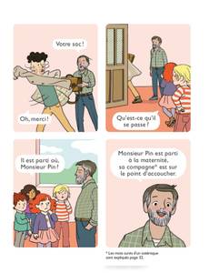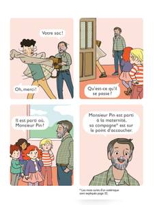 Avec une BD, c’est facile de commencer à lire ! Aujourd’hui M. Pin a quitté précipitamment la classe… Sa femme va accoucher ! Les élèves ont hâte de rencontrer son bébé mais que vont-ils faire en son absence ? Grâce à Nico et à M. Follet, les CP apprennent à faire germer des graines de marronnier et les mettre en terre pour qu’ils deviennent des arbres. Lors d’une balade en forêt, ils découvrent un petit oisillon tombé de son nid. Une histoire tendre sur la naissance et l’incroyable mystère de la vie.