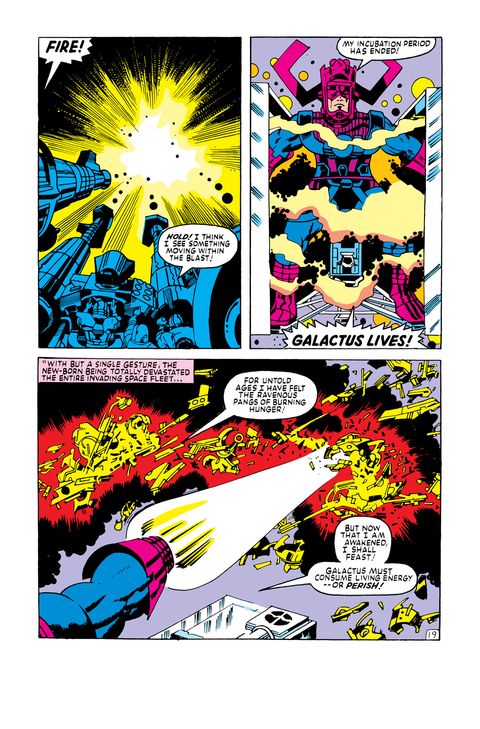 Galan est le dernier survivant de l'univers qui précède le nôtre. Devenu une force cosmique nommé Galactus, il est forcé de dévorer des planètes entières pour survivre. Sa place dans l'univers et son combat contre les héros de la Terre est le sujet de certaines des plus grandes sagas Marvel. Un vilain d'anthologie qui méritait bien son ANTHOLOGIE. Alors que le nouveau film Fantastic Four promet une version de Galactus digne du concept imaginé par Jack Kirby (au contraire du nuage cosmique d'un précédent film), nous saisissons cette occasion de rendre hommage à l'un des êtres les plus mémorables de l'univers Marvel, avec une sélection d'épisodes glanés au fil des âges.