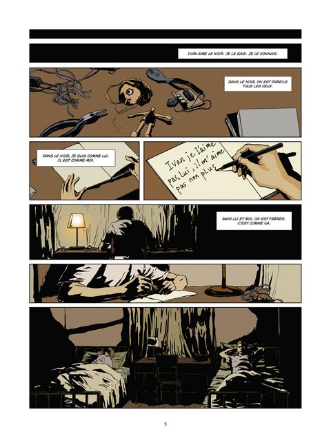 « Ivan et moi, on s'aime pas. Mais on est frères, c'est comme ça. » La vie de Niko et Ivan aurait pu être normale, sauf que voilà : Ivan est le souffre douleur du père. Tandis que Niko est le « fils parfait », Ivan se prend tous les coups, toutes les insultes, toute la haine… Et s'il est puni pour une raison qu'il ne connaît pas, autant mériter tel châtiment ! Ivan devient tellement dur, qu'un jour que les coups du père se retournent contre la mère et contre Niko, Ivan le tue. La vie pourrait alors devenir normale, si seulement… Si seulement la vie avait encore un sens après tant de violence. Si seulement Ivan était capable de tourner le dos au passé... Pierre Makyo s'attaque, avec ce roman graphique sobrement dessiné, à un sujet qui lui tenait à cœur : les secrets de famille, et l'inéluctabilité avec laquelle ils semblent se répéter…