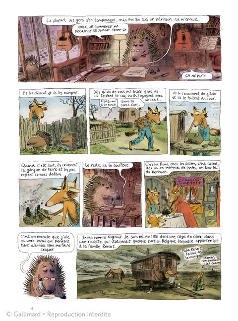 Jeangot Renart naît dans une roulotte et adopte très vite un petit hérisson du nom de Niglaud. Devenus amis alors que la tradition aurait voulu que Niglaud finisse dans l’estomac de Renart, les deux compères font la manche pour survivre, jouent de la guitare, courent le guilledou et le cachet dans le Paris de l’Entre-deux-guerres...