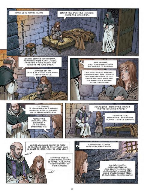 A l'aube de sa mort, le 30 mai 1431, Jehanne d'Arc reçoit la visite d'un dominicain, Frère Martin Ladvenu, et lui confesse sa vie. Vers l'âge de 13 ans, tandis que le royaume de France est sous la domination des Anglais alliés aux Bourguignons, cette jeune fille de Lorraine est missionnée par des "voix" , celles de l'archange saint Michel, de sainte Catherine d'Alexandrie et de sainte Marguerite d'Antioche. Celles-ci lui annoncent qu'elle devra délivrer Orléans et faire sacrer le dauphin Charles VII. Ayant obtenu quatre ans plus tard une petite troupe du capitaine de Vaucouleurs, Jehanne commence alors sa célèbre épopée...